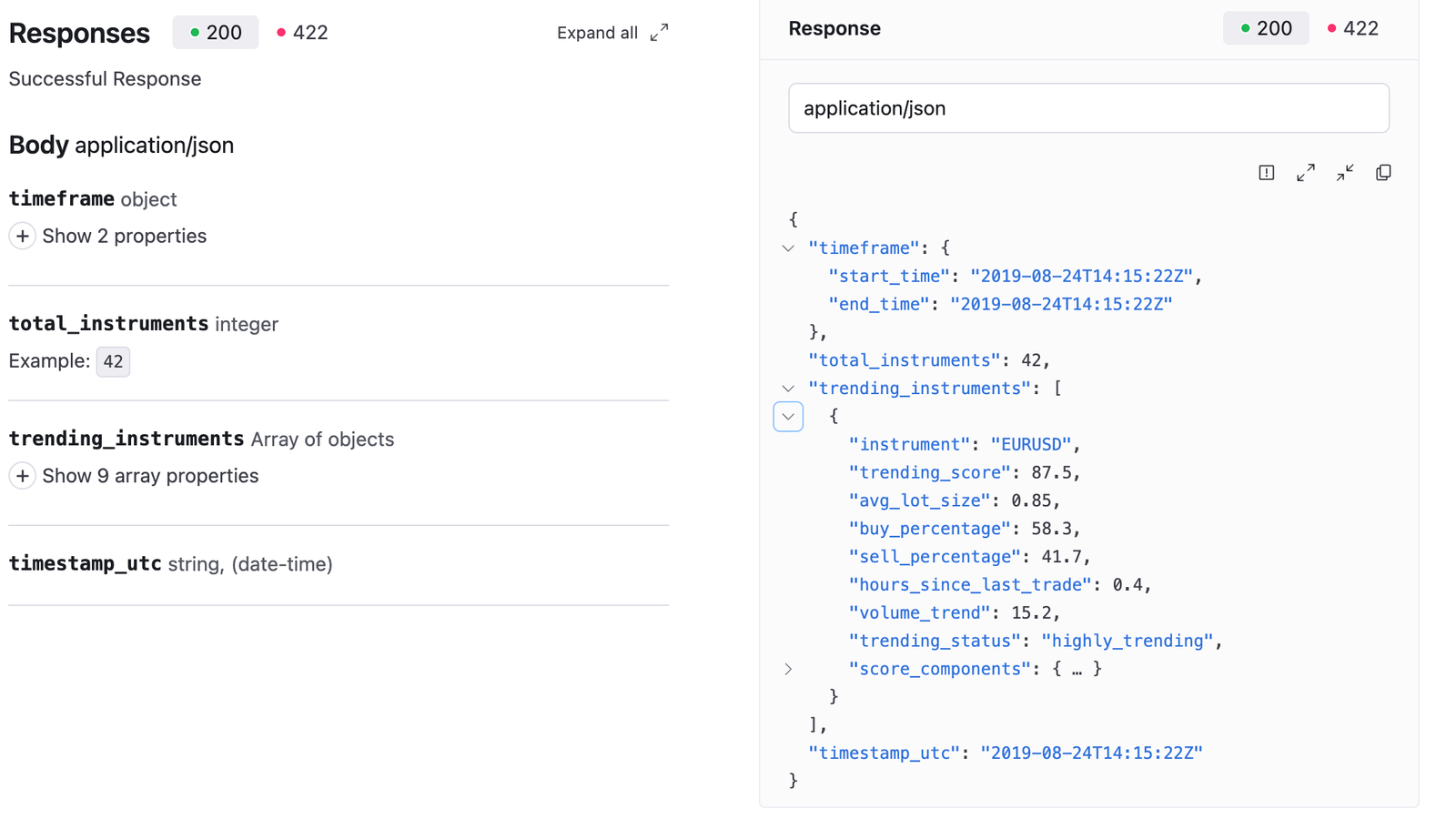 View the possible responses for the feeds by exploring the endpoint data and our JSON structure, designed to make it as easy as possible to get insights quickly.